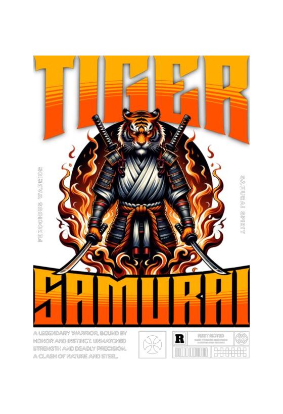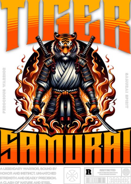 Τίγρη-σαμουράι με κατάνα, σε φλόγες. Θέμα δύναμης και τιμής.