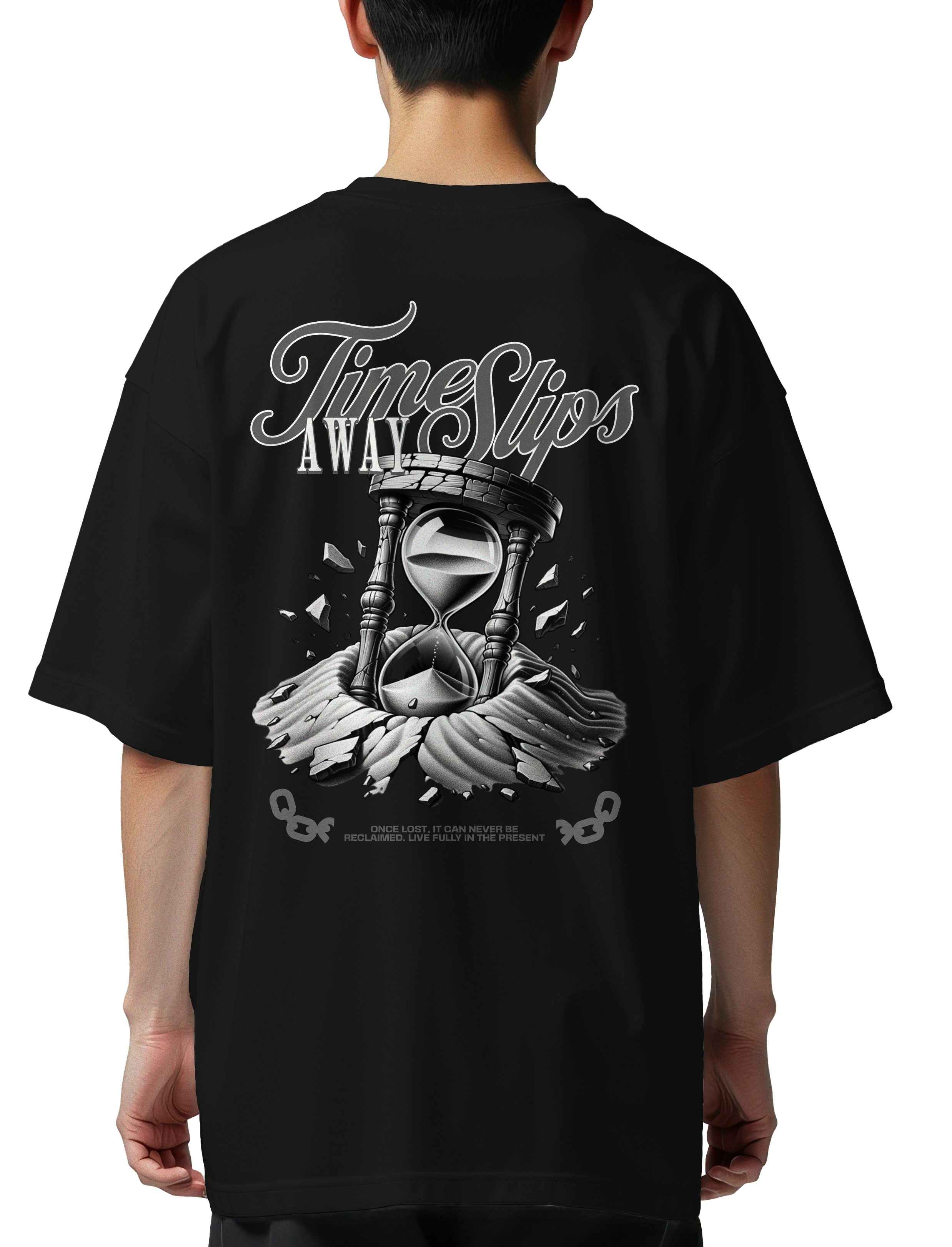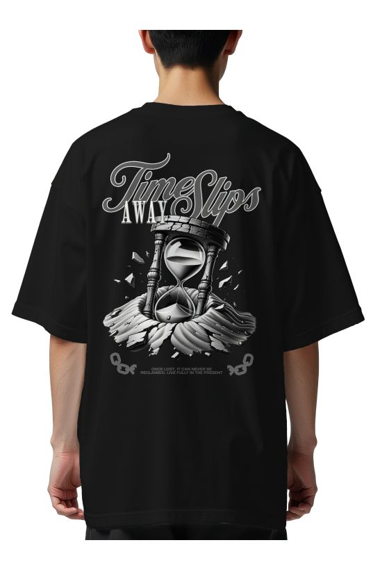 Oversized T-Shirt Time Slips Away Pop Culture Black