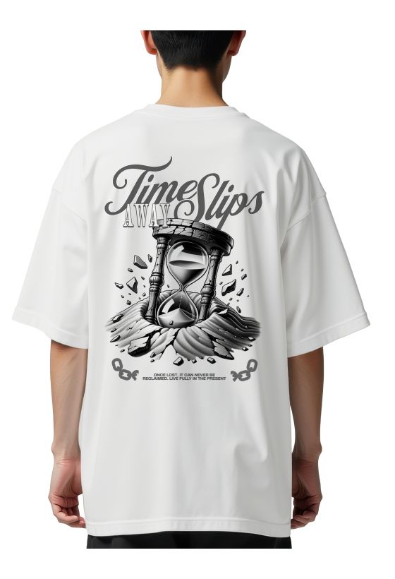 Oversized T-Shirt Time Slips Away Pop Culture White