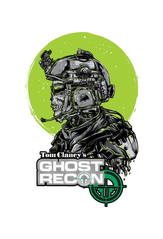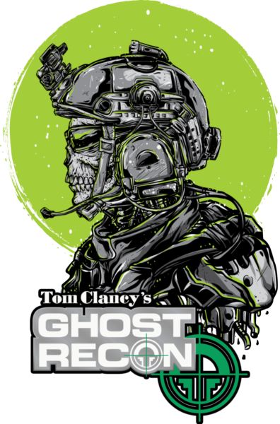 Στυλιζαρισμένο κρανίο με tactical εξοπλισμό και λογότυπο "Tom Clancy's Ghost Recon".