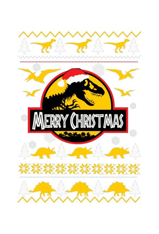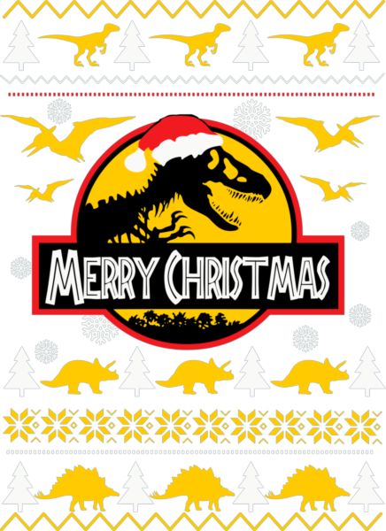 Ugly sweater Jurassic Park, T-Rex με καπέλο Άγιου Βασίλη, δεινόσαυροι και χριστουγεννιάτικα σχέδια.