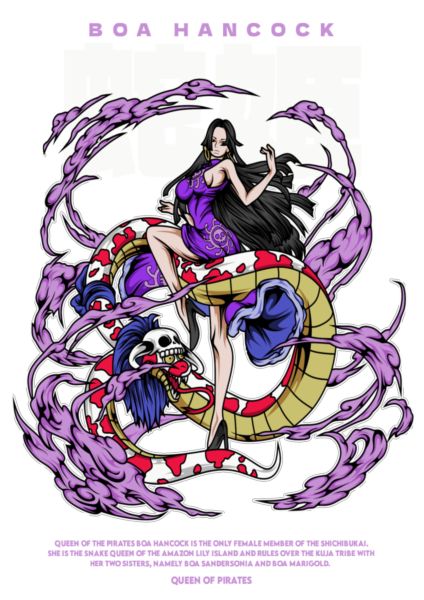 Περιγραφή της Boa Hancock, βασίλισσας των φιδιών στο νησί Amazon Lily, μέλος των Shichibukai.