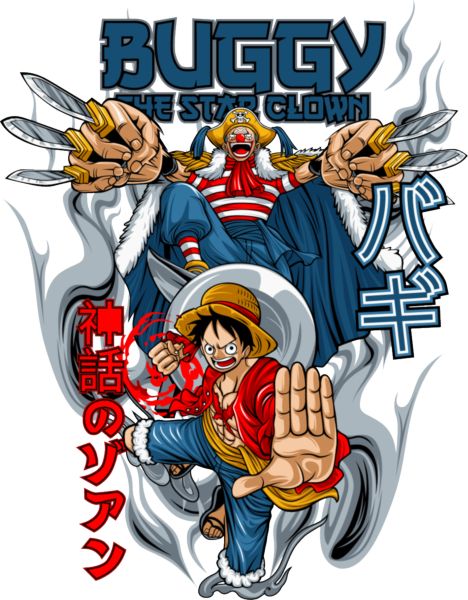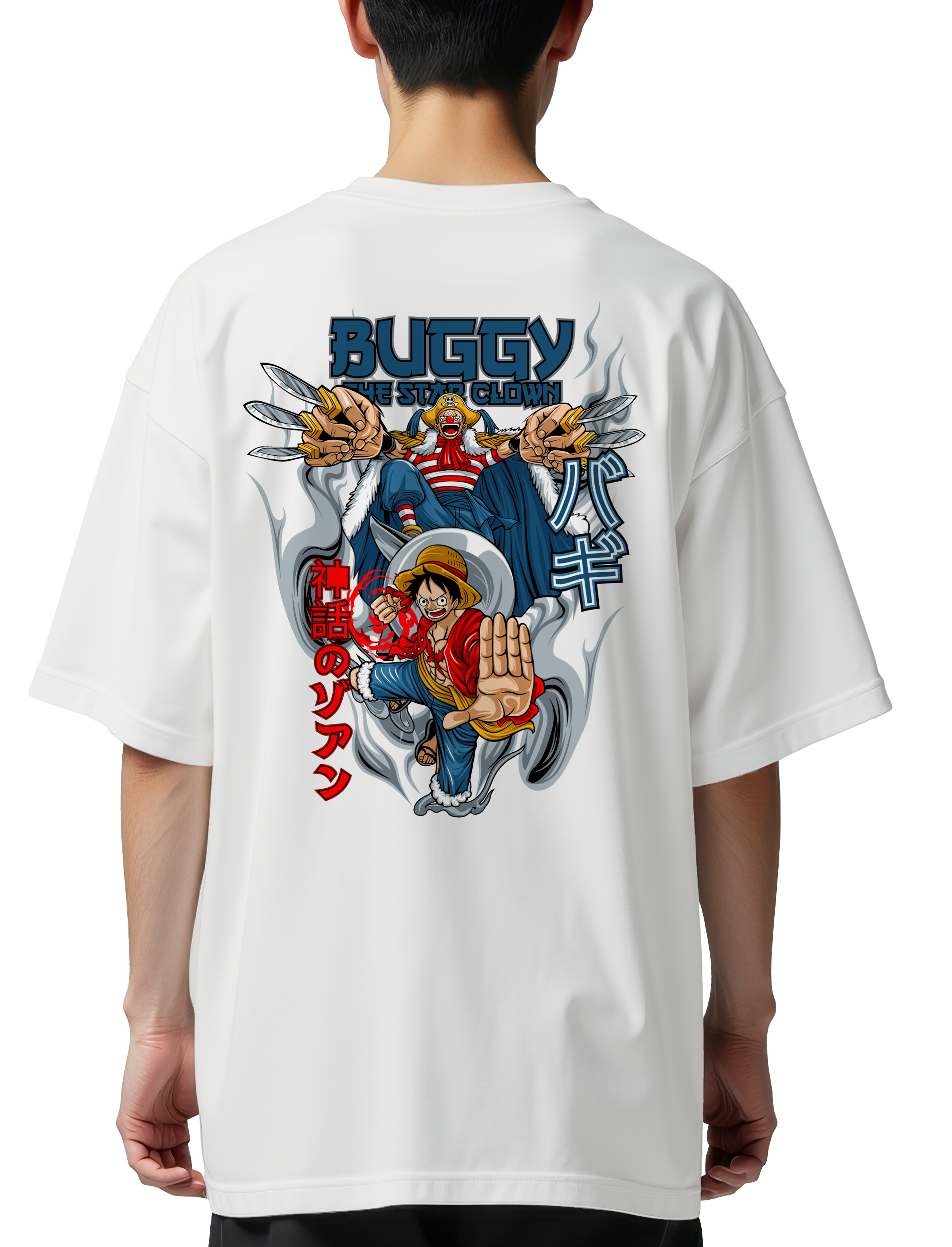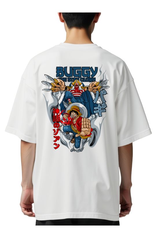 Oversized T-Shirt Buggy One Piece Star Clown Pop Culture White