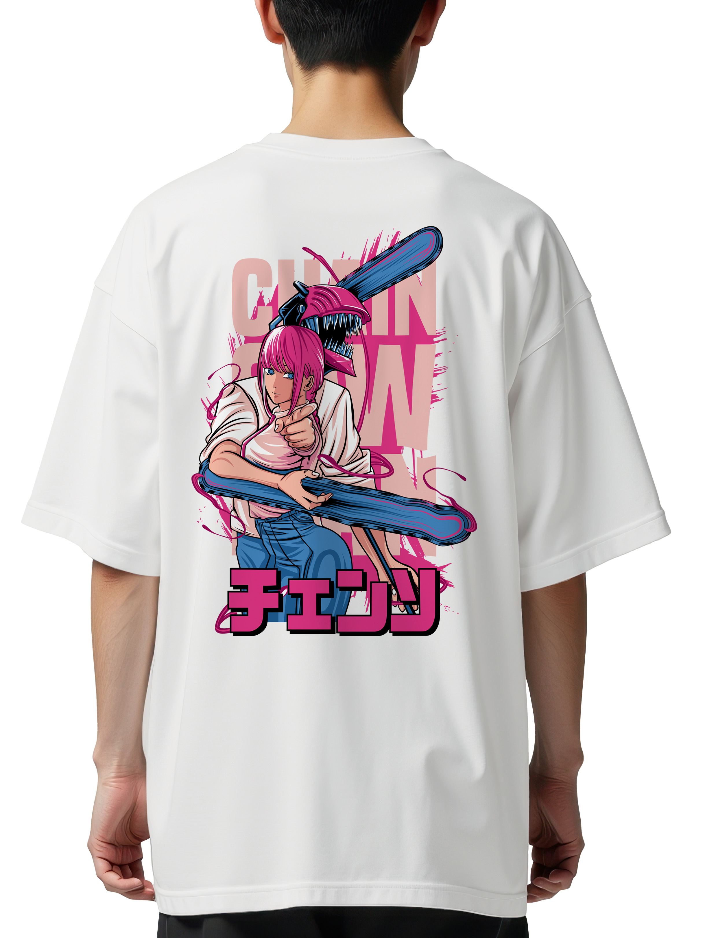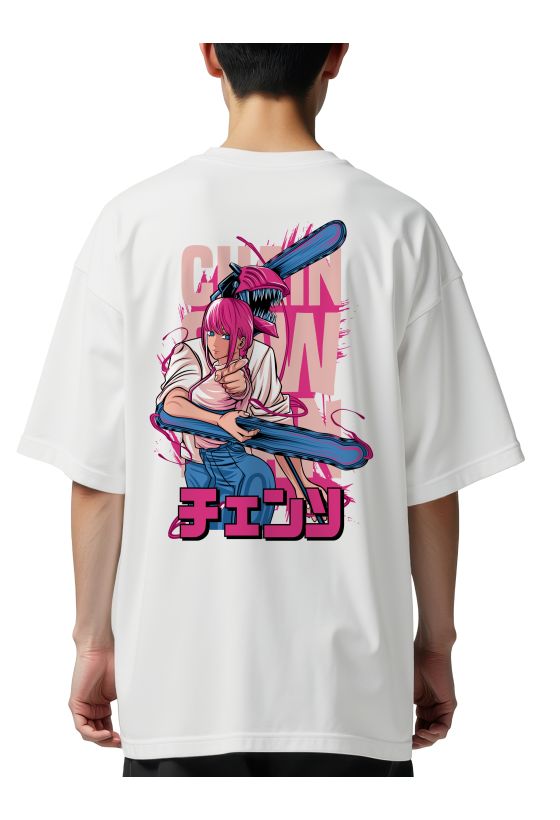 Oversized T-Shirt Denji & Makima Chainsaw Man Pop Culture White