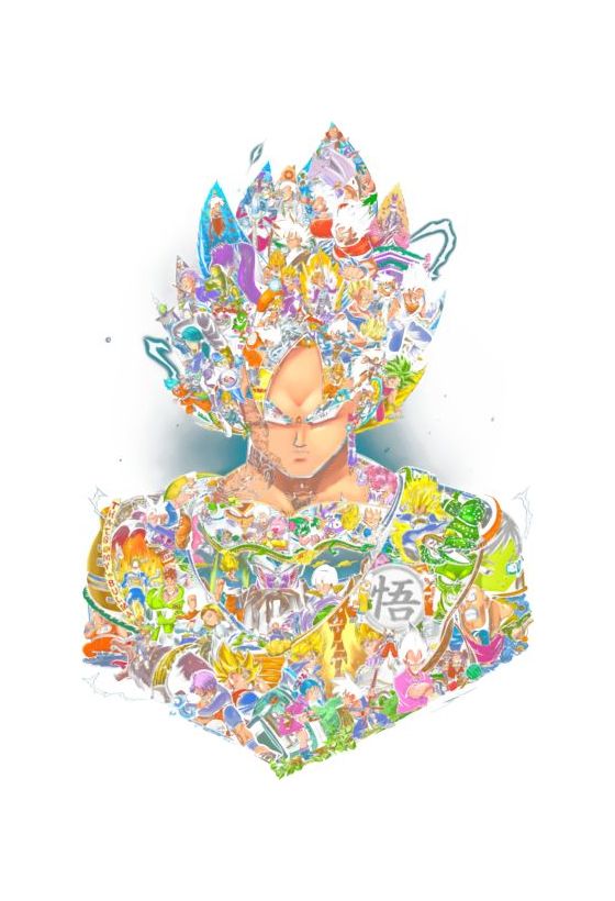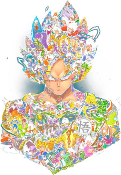 Σιλουέτα Super Saiyan Goku από κολάζ με όλους τους βασικούς χαρακτήρες Dragon Ball.