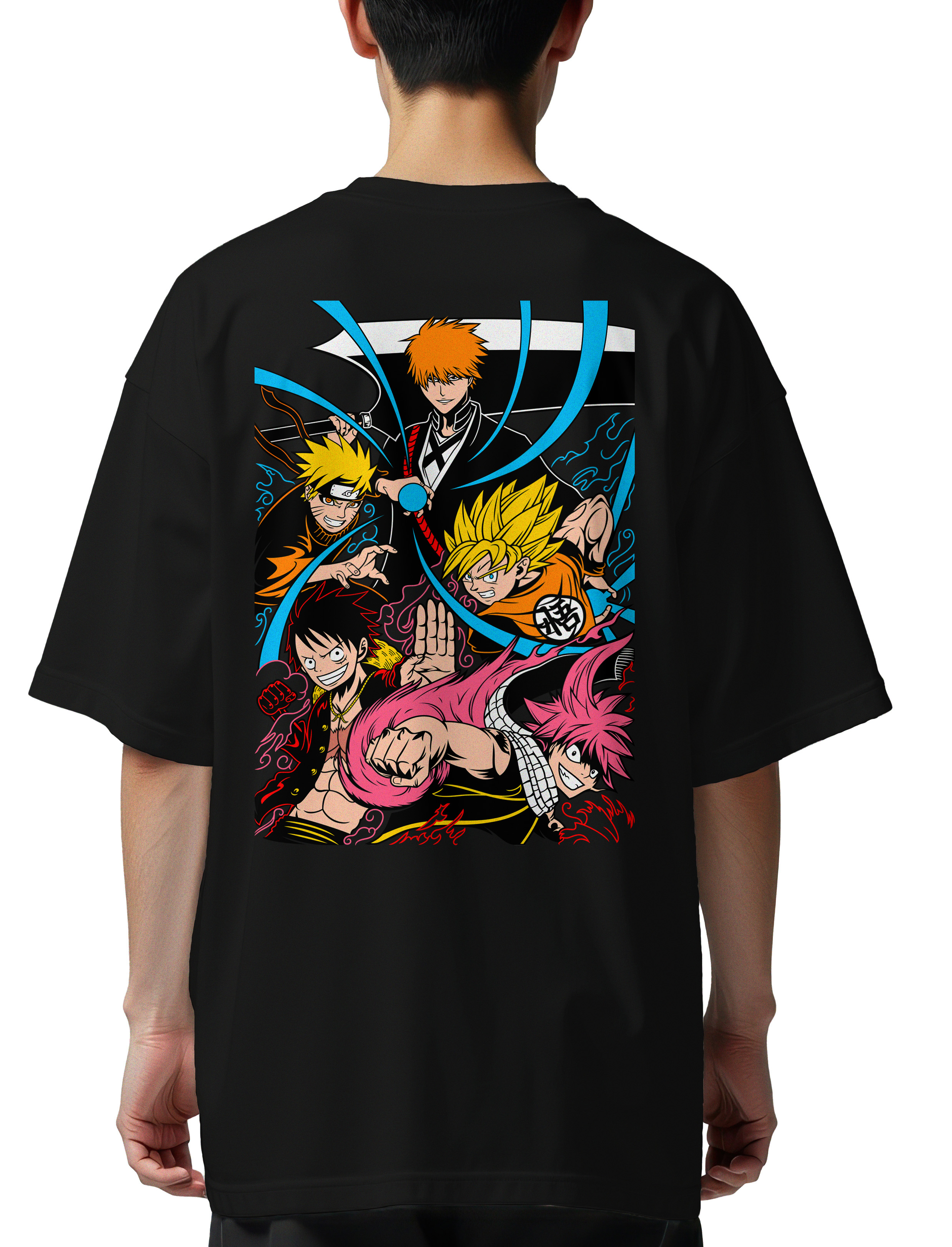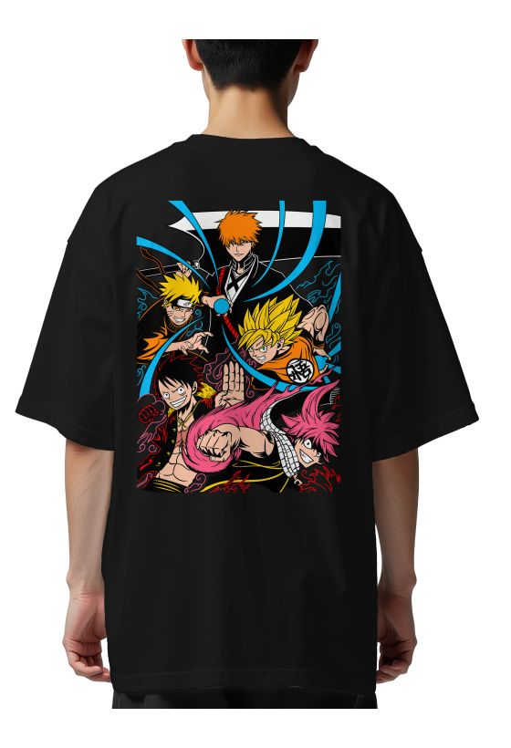 Oversized T-Shirt Five Legend Anime Crossover Pop Culture Black