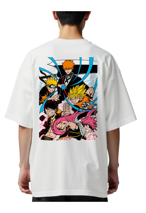 Oversized T-Shirt Five Legend Anime Crossover Pop Culture White