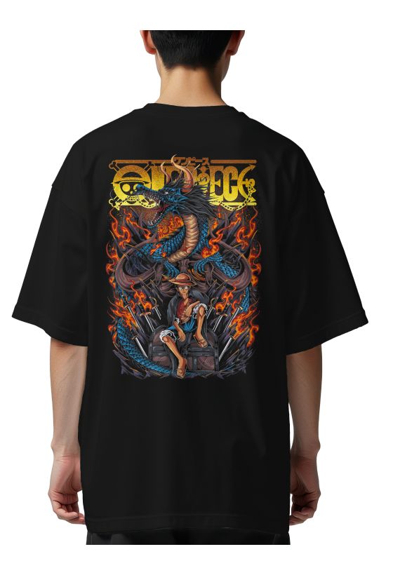 Oversized T-Shirt Kaido x Luffy One Piece Pop Culture Black