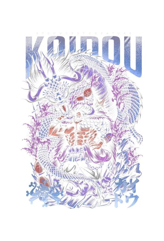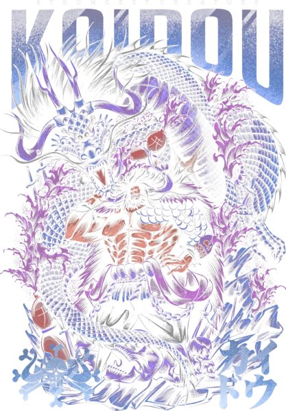 Kaido σε ανθρώπινη μορφή με Seiryu δράκο, σκοτεινή χρωματική παλέτα.