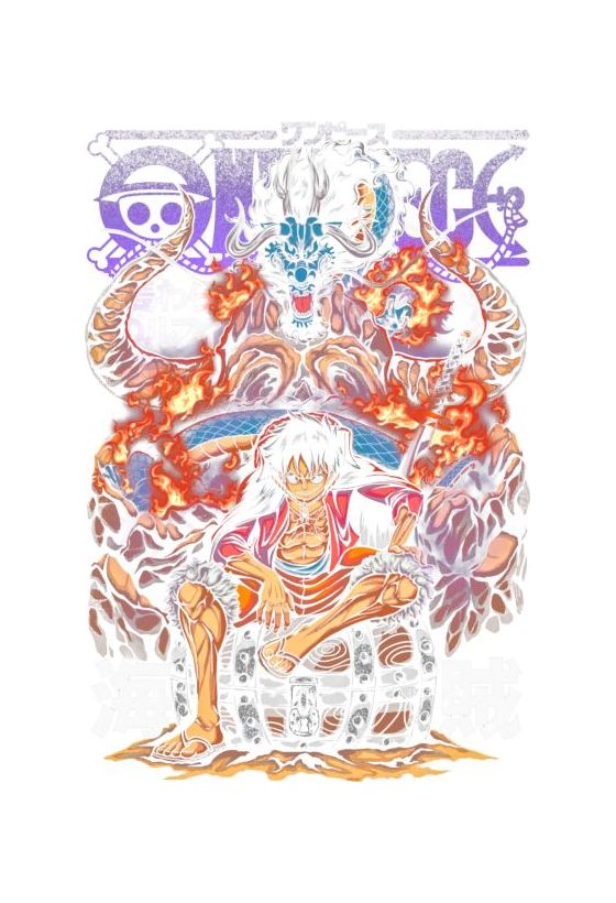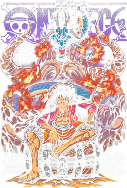 Monkey D. Luffy σε βαρέλι με τον Kaido δράκο πίσω, λογότυπο One Piece.