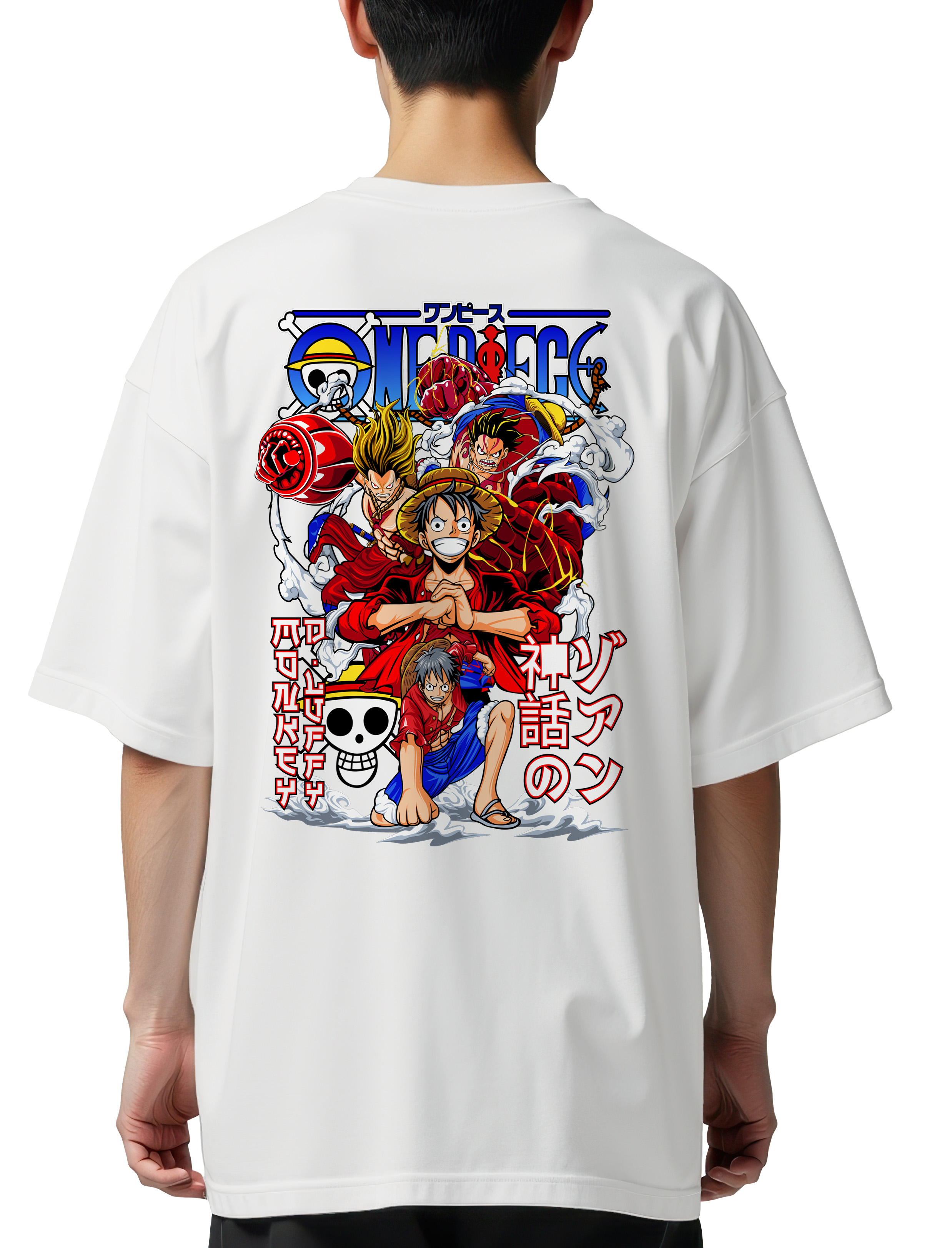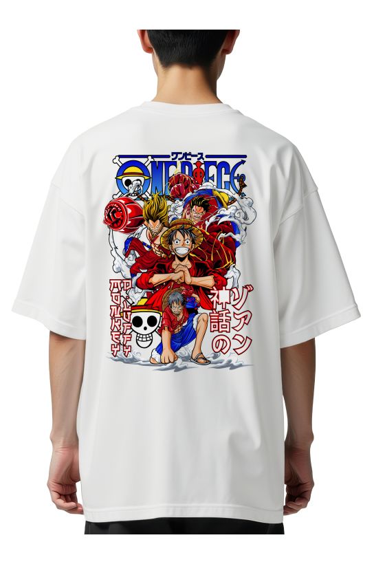 Oversized T-Shirt Monkey D. Luffy and his crew Pop Culture White