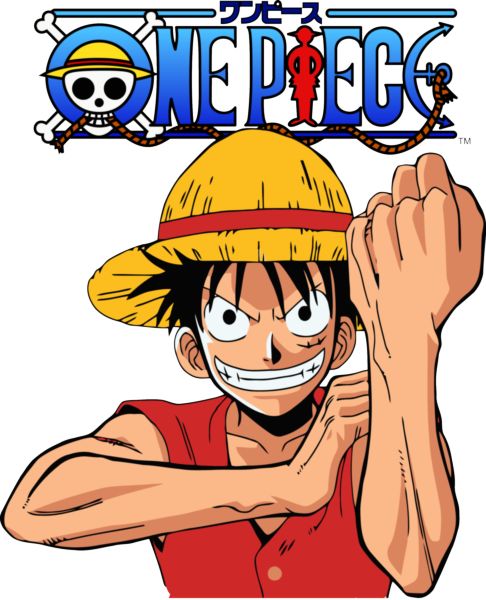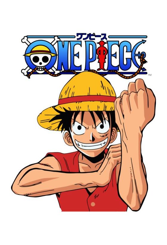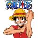 Ο Luffy με κόκκινο γιλέκο και ψάθινο καπέλο, σε αποφασιστική πόζα. Μαύρο φόντο με λογότυπο One Piece.
