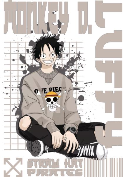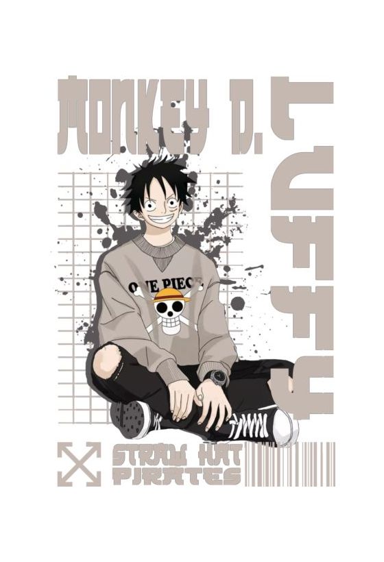 Monkey D. Luffy σε streetwear με hoodie Straw Hat Pirates και sneakers.