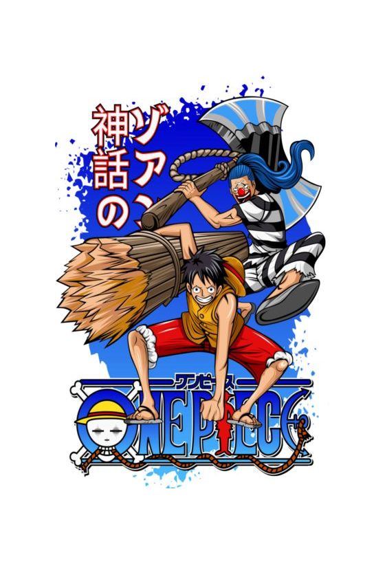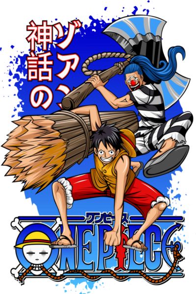 Εικονογράφηση One Piece με τον Monkey D. Luffy και τον Buggy the Clown σε δυναμική αντιπαράθεση.