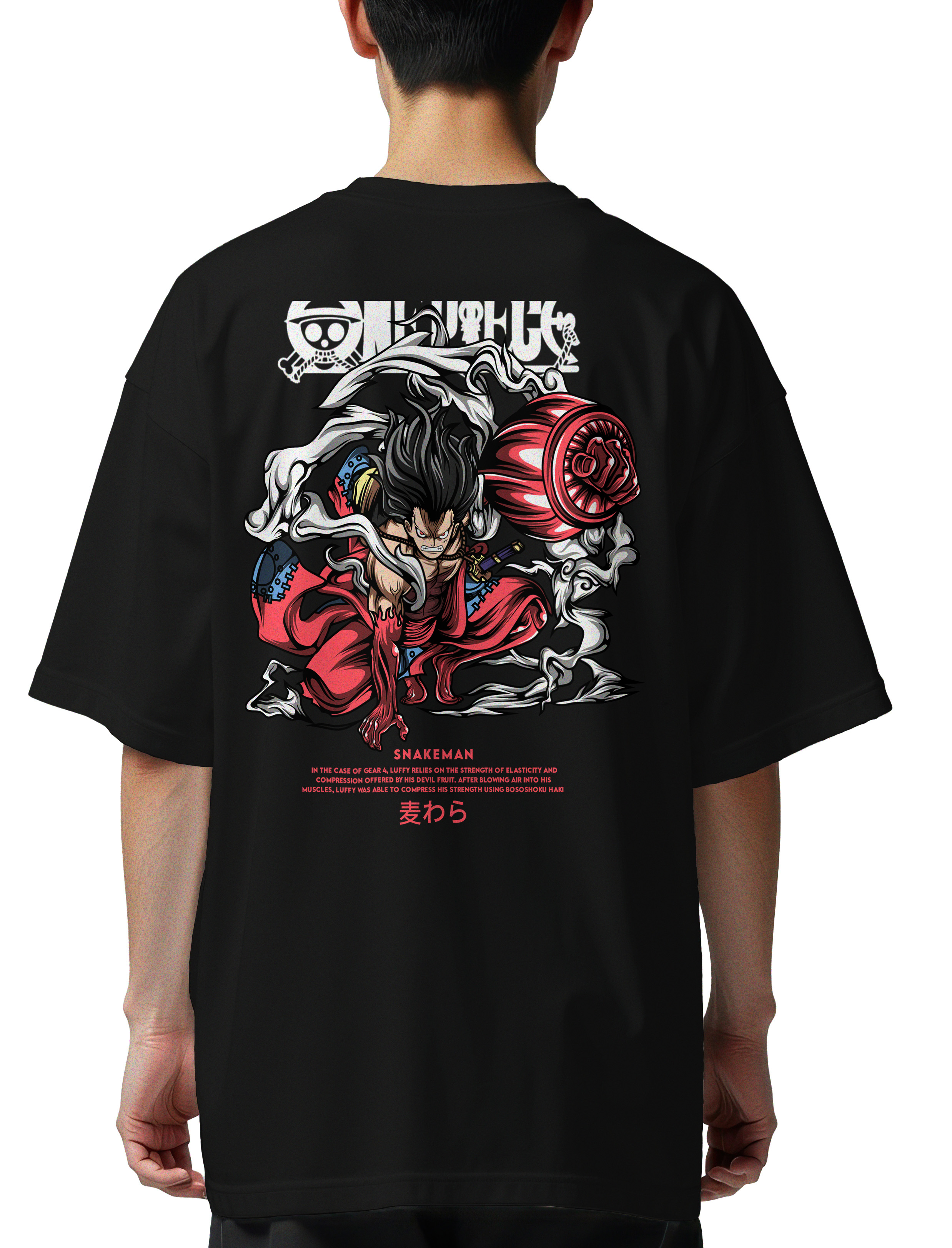 Oversized T-Shirt One Piece Luffy Snakeman Pop Culture Black