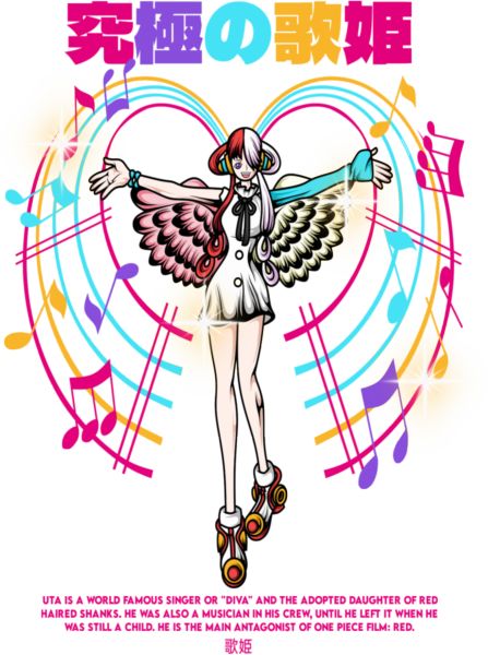 Εικονογράφηση της Uta (One Piece Film: Red) με μουσικά στοιχεία, φτερά και το μουσικό ραβδί της.
