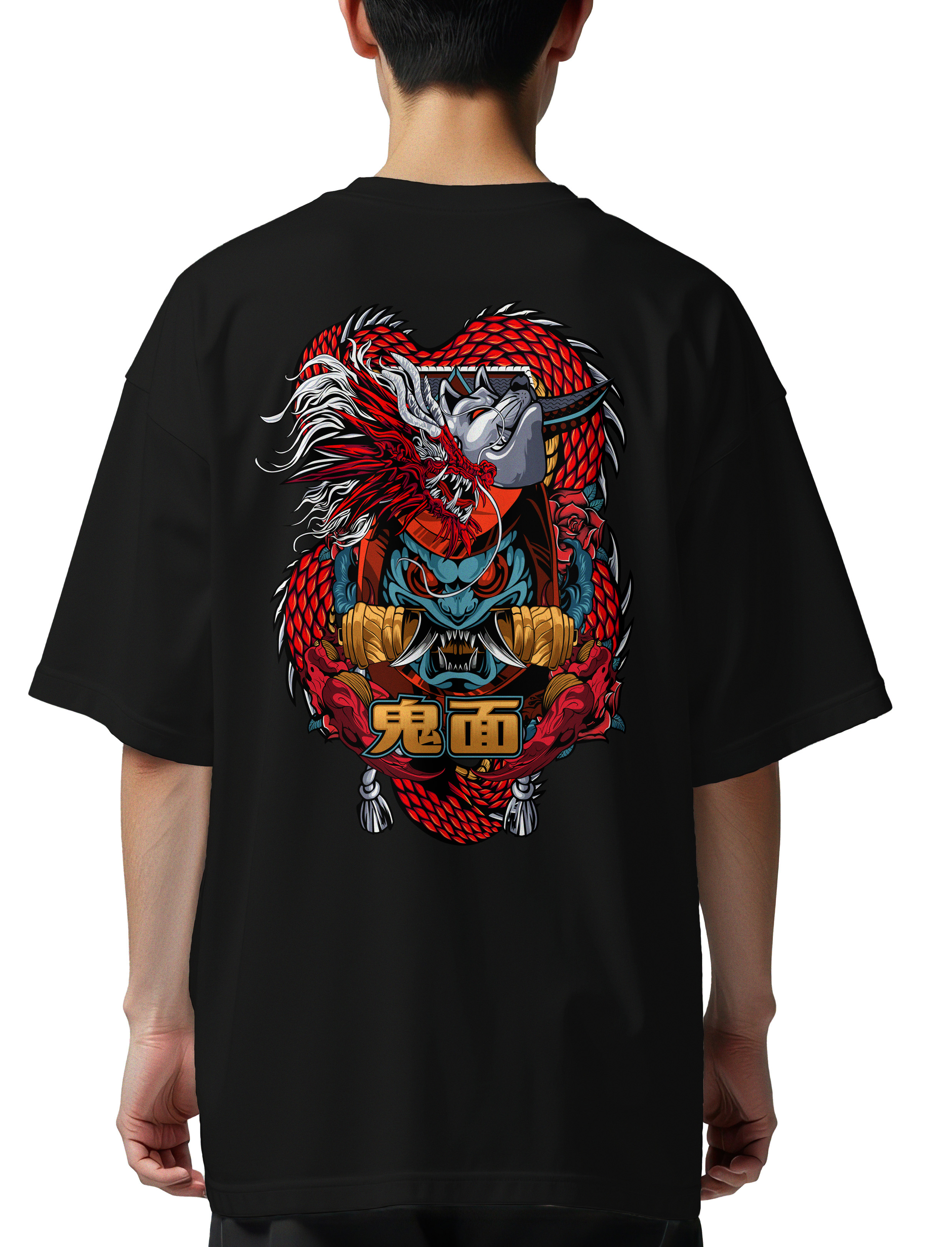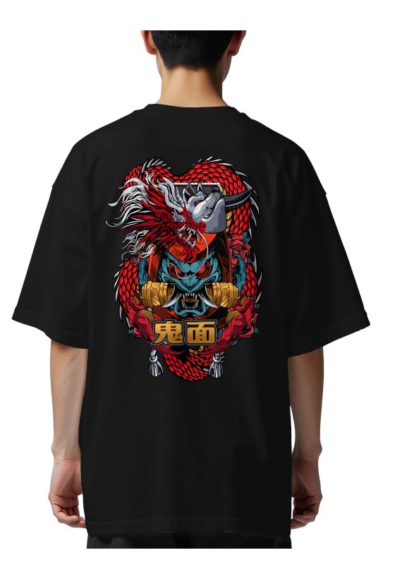 Oversized T-Shirt Samurai Dragon Pop Culture Black