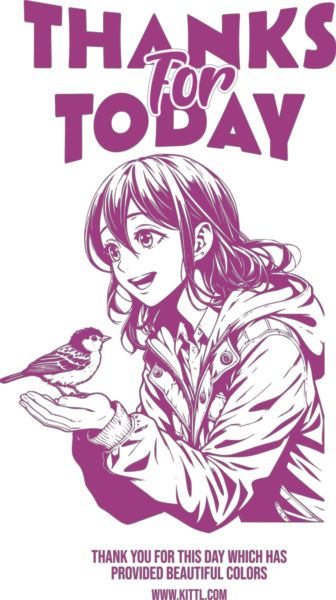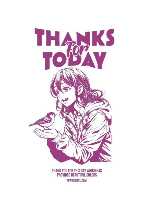 Anime χαρακτήρας με πουλί στο χέρι. Κείμενο «THANKS For TODAY» και ευχαριστήριο μήνυμα.