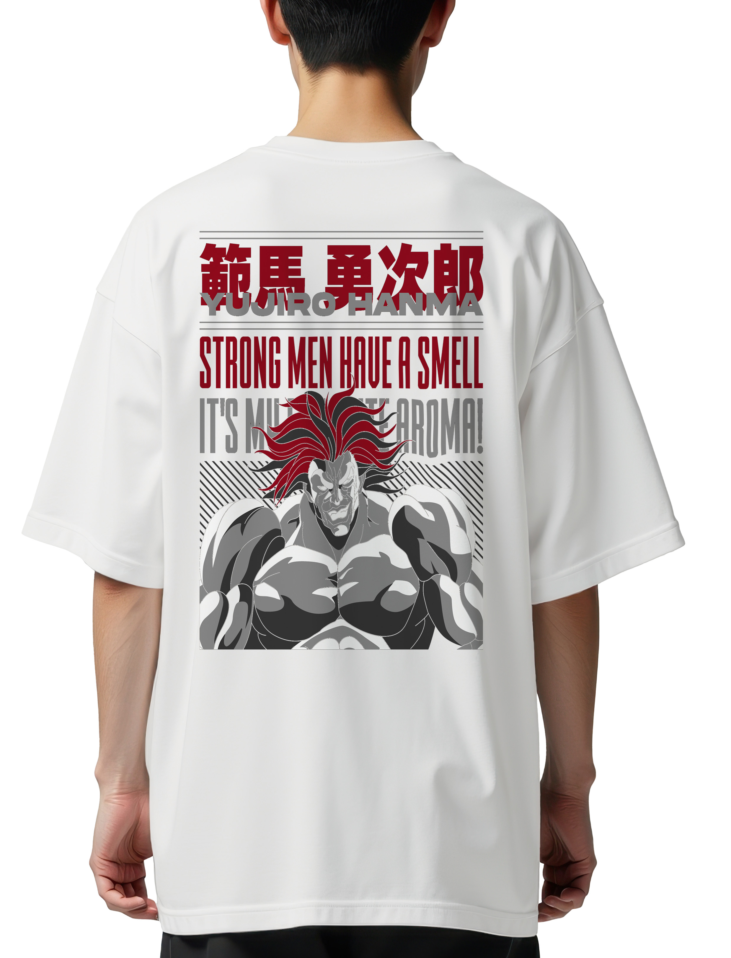 Oversized T-Shirt Ujiro Baki Hanma Pop Culture White