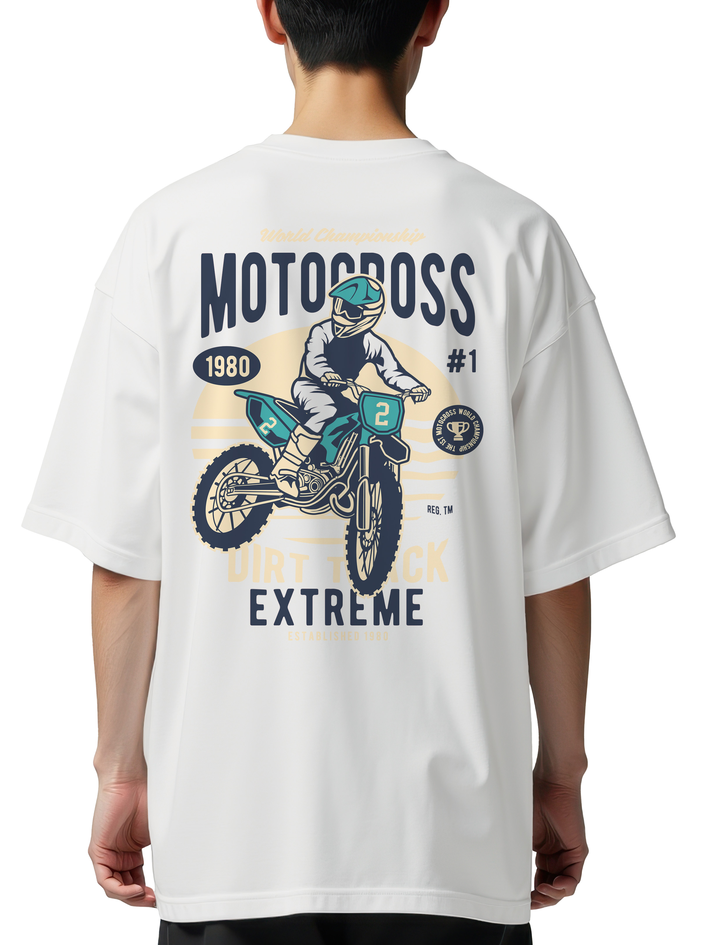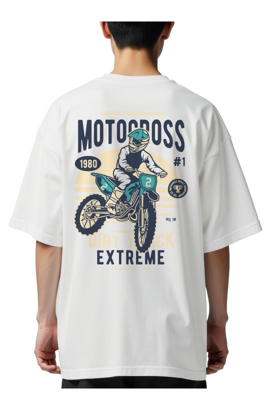 Oversized T-Shirt Motocross Extreme Dirt Track Pop Culture White