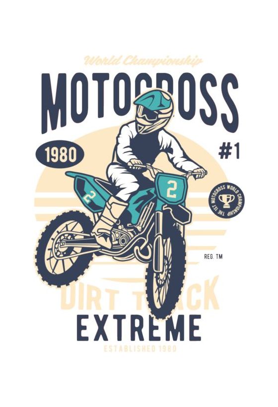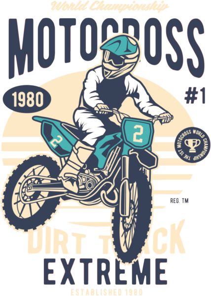 Ρετρό γραφιστικό σχέδιο εμπνευσμένο από το Motocross World Championship 1980, με vintage χρώματα και στοιχεία τυπογραφίας.