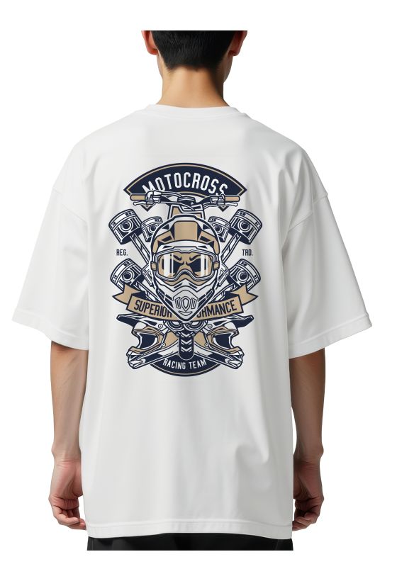 Oversized T-Shirt Motocross Racing Team Pop Culture White