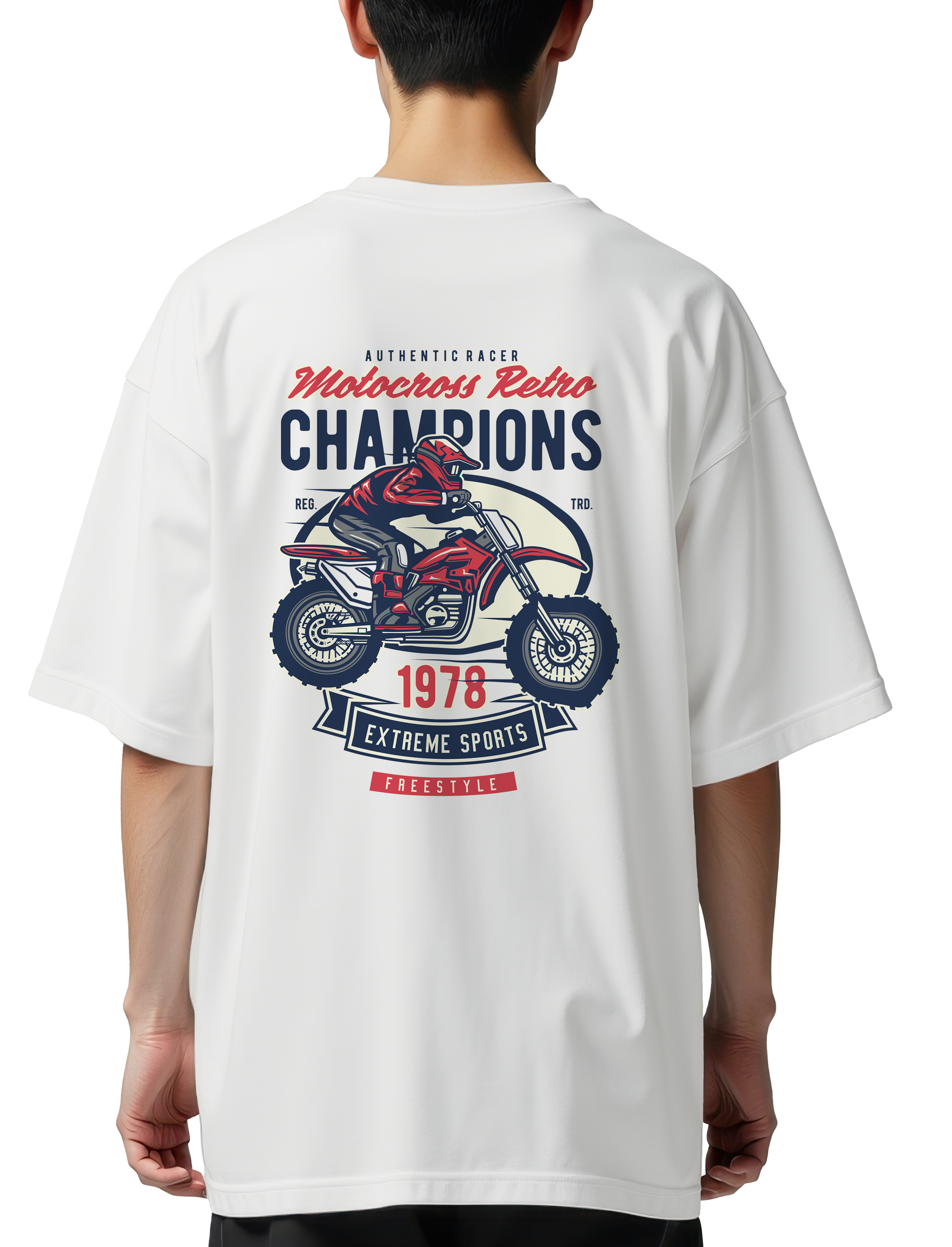 Oversized T-Shirt Motocross Retro Champion Pop Culture White