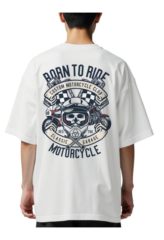 Oversized T-Shirt Born To Ride Motorcycle Pop Culture White