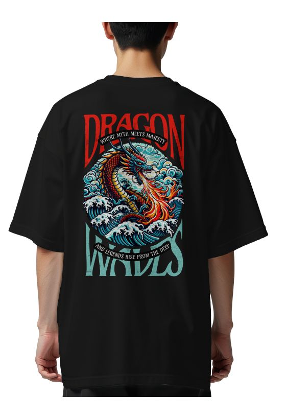 Oversized T-Shirt Dragon Waves Pop Culture Black