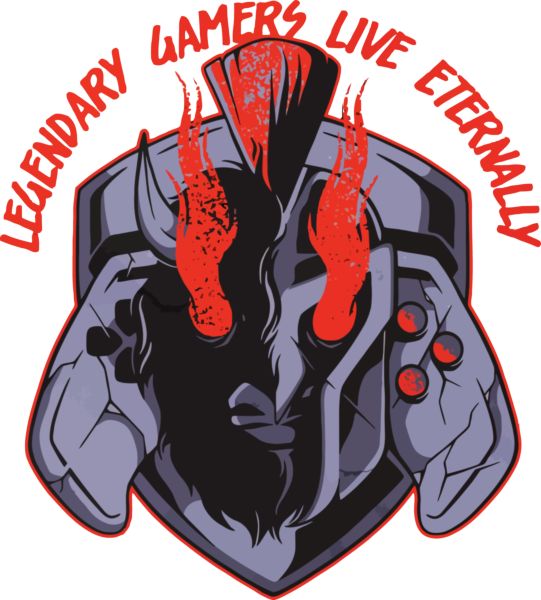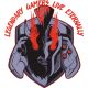 Έμβλημα με μινώταυρο/κράνος, φλόγες και το κείμενο «ΘΡΥΛΙΚΟΙ ΠΑΙΚΤΕΣ ΖΟΥΝ ΑΙΩΝΙΑ».