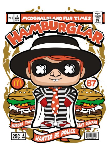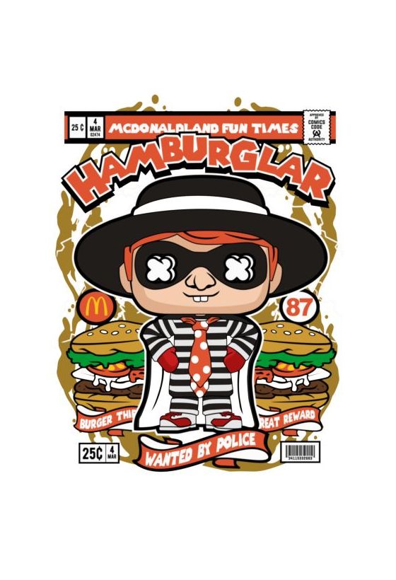 Hamburglar (McDonald’s) σε chibi στυλ κόμικ, με τίτλους «HAMBURGLAR» και «MCDONALDLAND FUN TIMES».