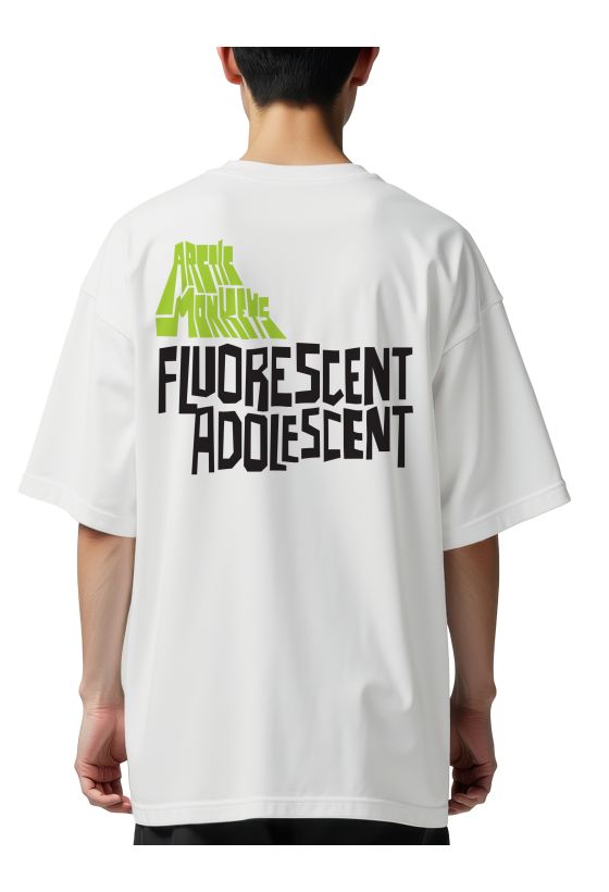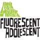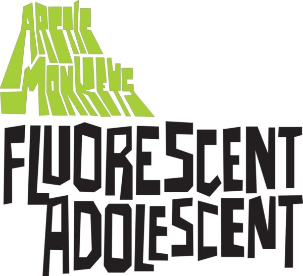 Λογότυπο «ARCTIC MONKEYS» σε πράσινη γραμματοσειρά, «FLUORESCENT ADOLESCENT» από κάτω.
