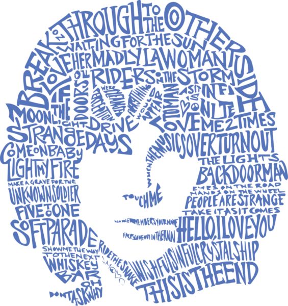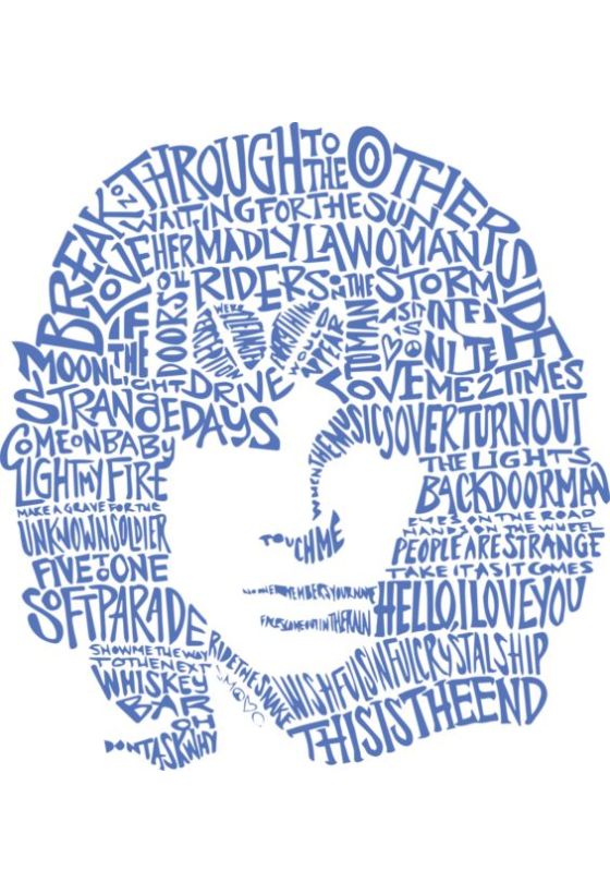 Τυπογραφικό πορτρέτο Jim Morrison φτιαγμένο από τίτλους τραγουδιών.