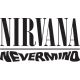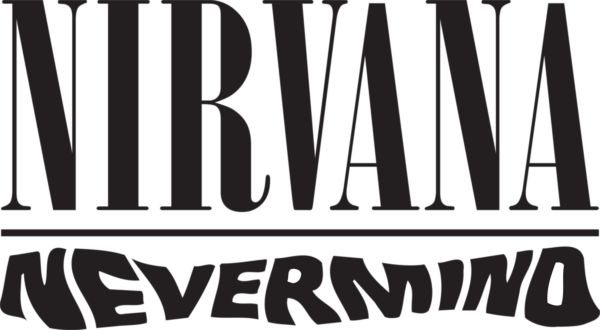 Σχέδιο με το λογότυπο Nirvana και τον τίτλο Nevermind σε χαρακτηριστική γραμματοσειρά grunge.