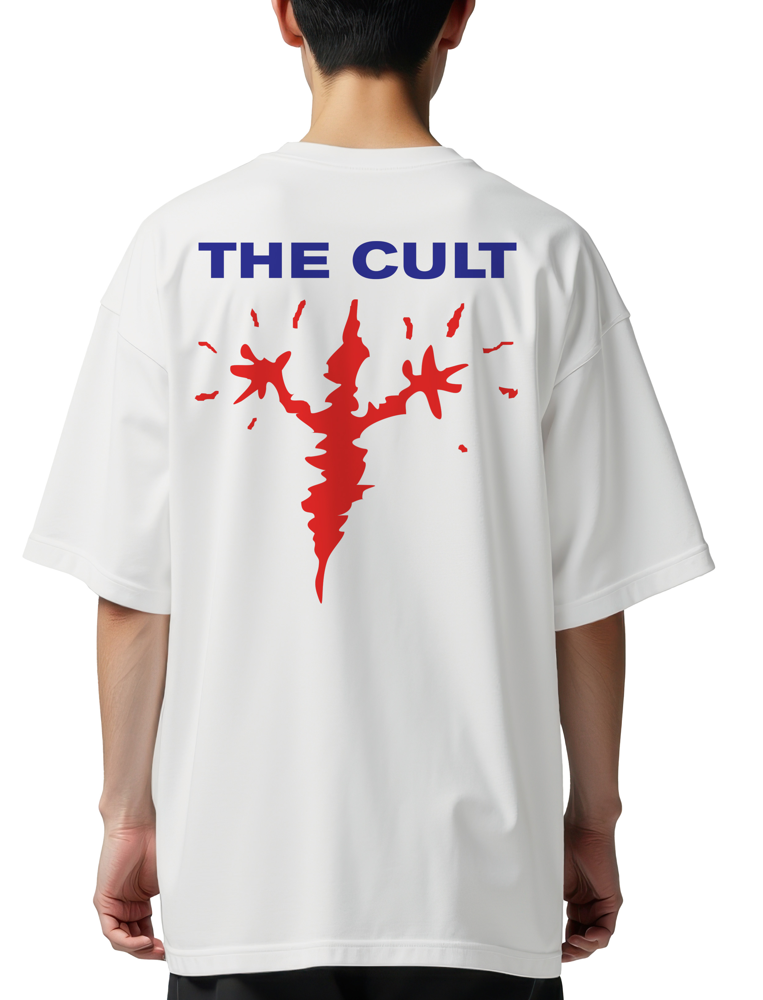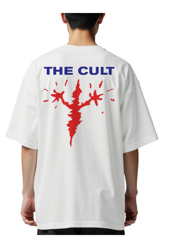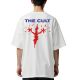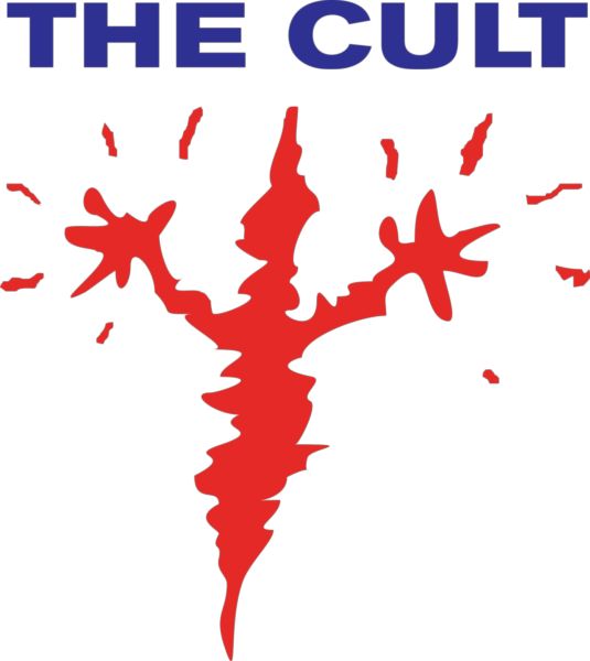 Λογότυπο "THE CULT" με κόκκινη δαιμονική φιγούρα από κάτω σε μαύρο.