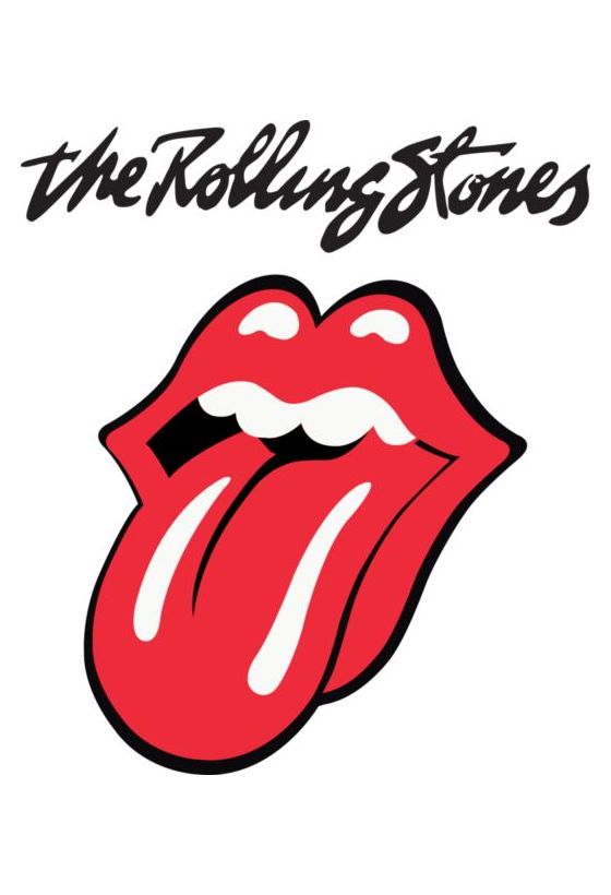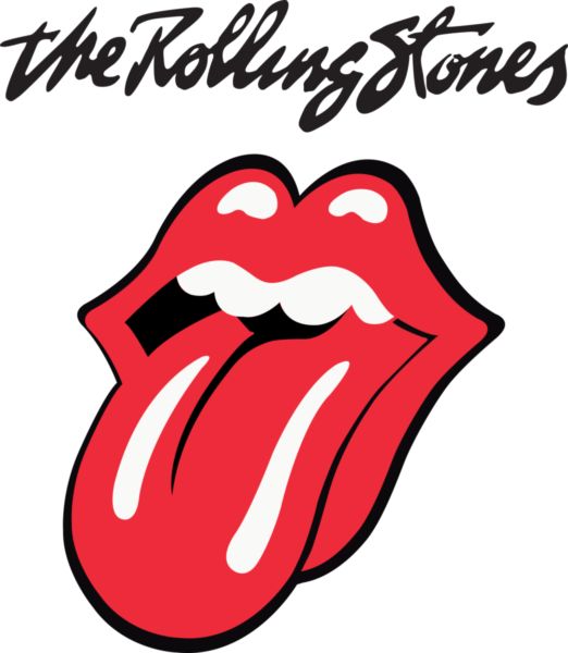 Rolling Stones λογότυπο "Tongue and Lips" κόκκινο σε μαύρο φόντο.