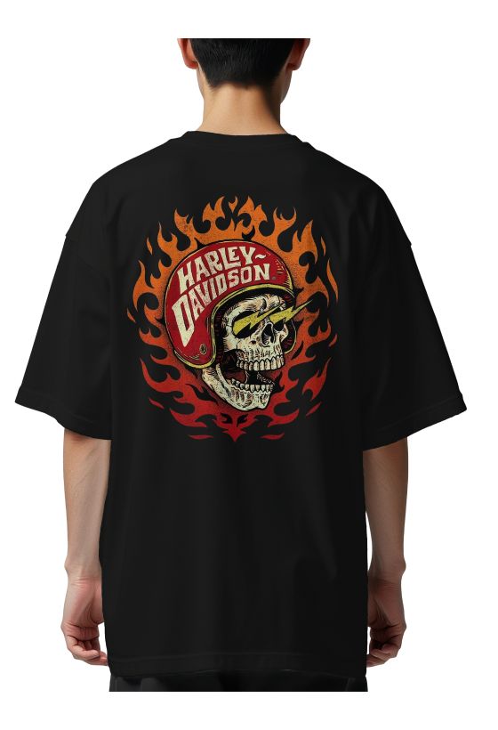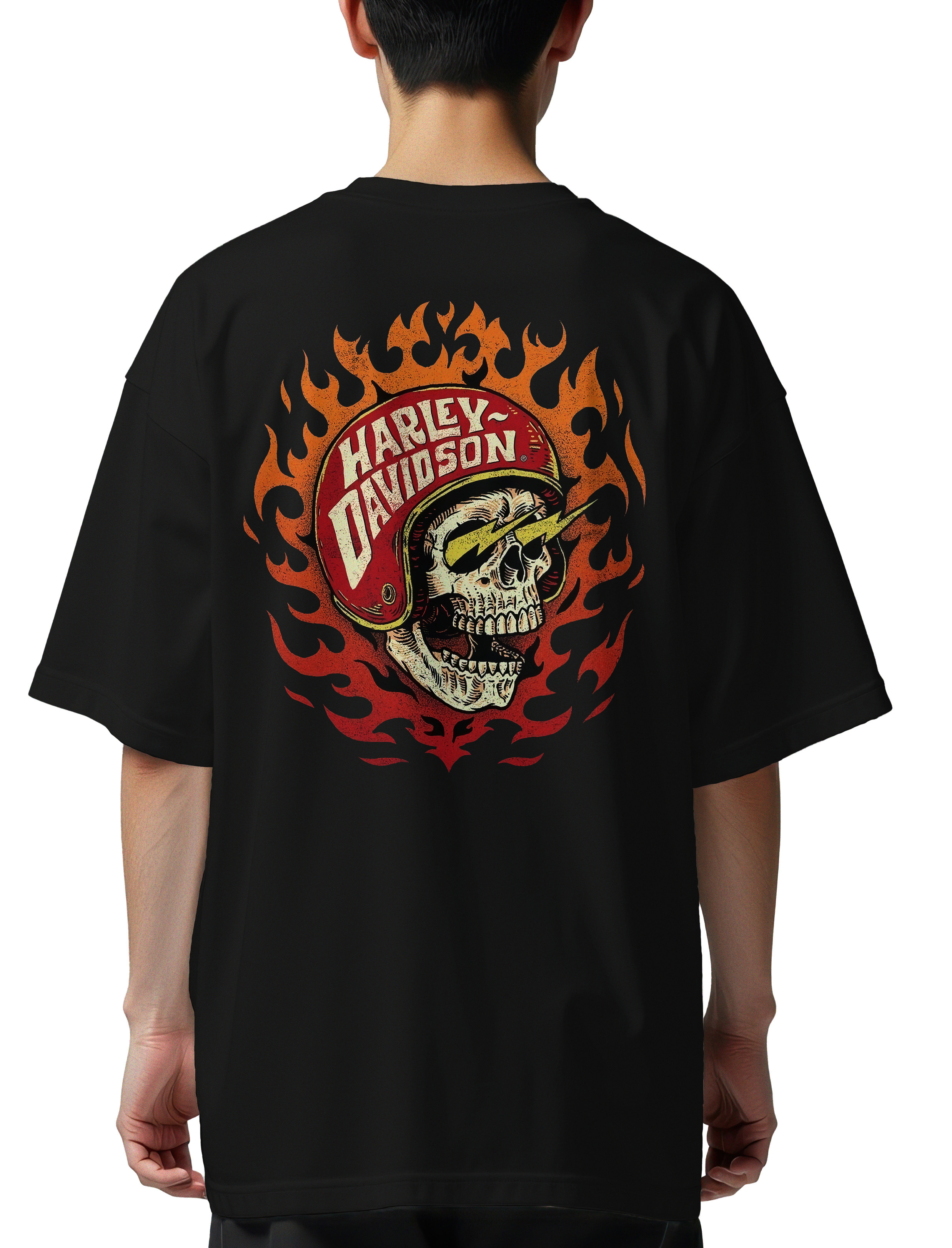 Oversized T-Shirt Harley Davidson Skull Pop Culture Black