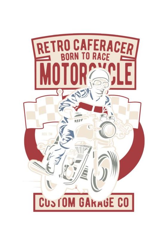 Cafe racer με καρό σημαίες και κείμενα "BORN TO RACE MOTORCYCLE".