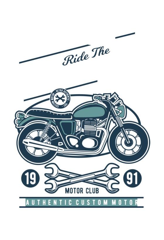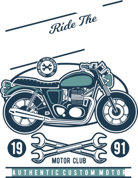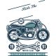 Vintage μοτοσυκλέτα σε μπλε-λευκό με κείμενα "Retro Classic" και "Motor Club".