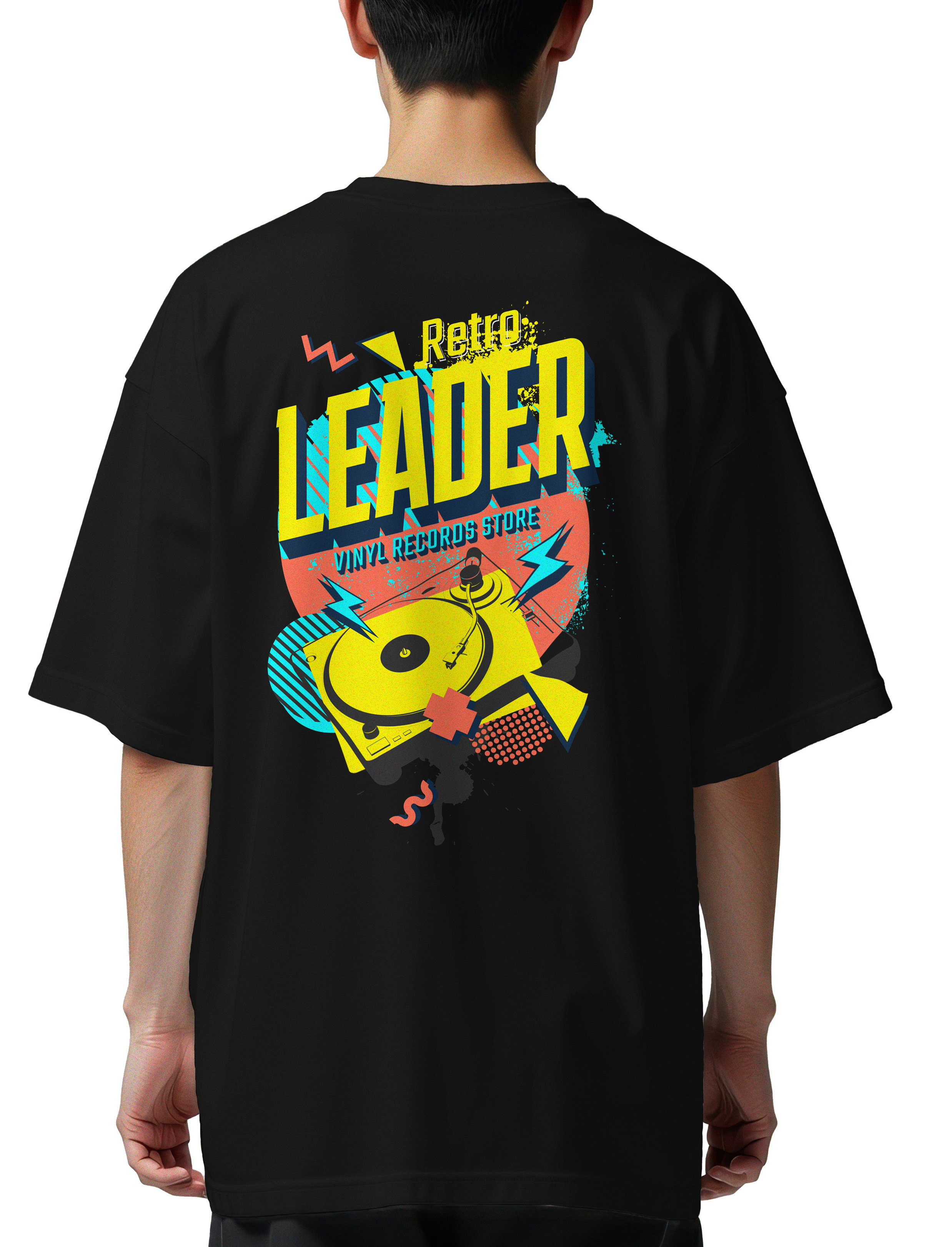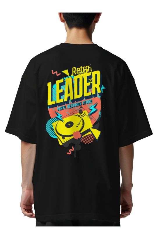 Oversized T-Shirt Retro Leader Vinyl Records Pop Culture Black