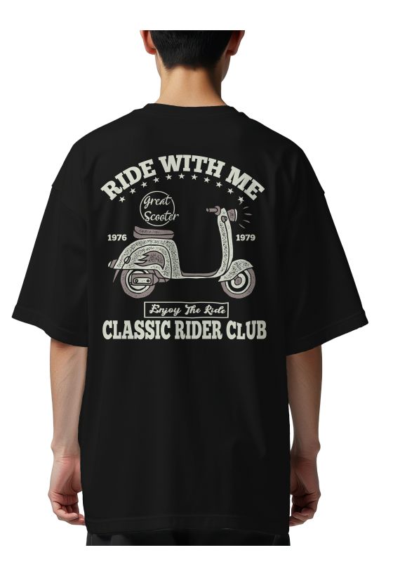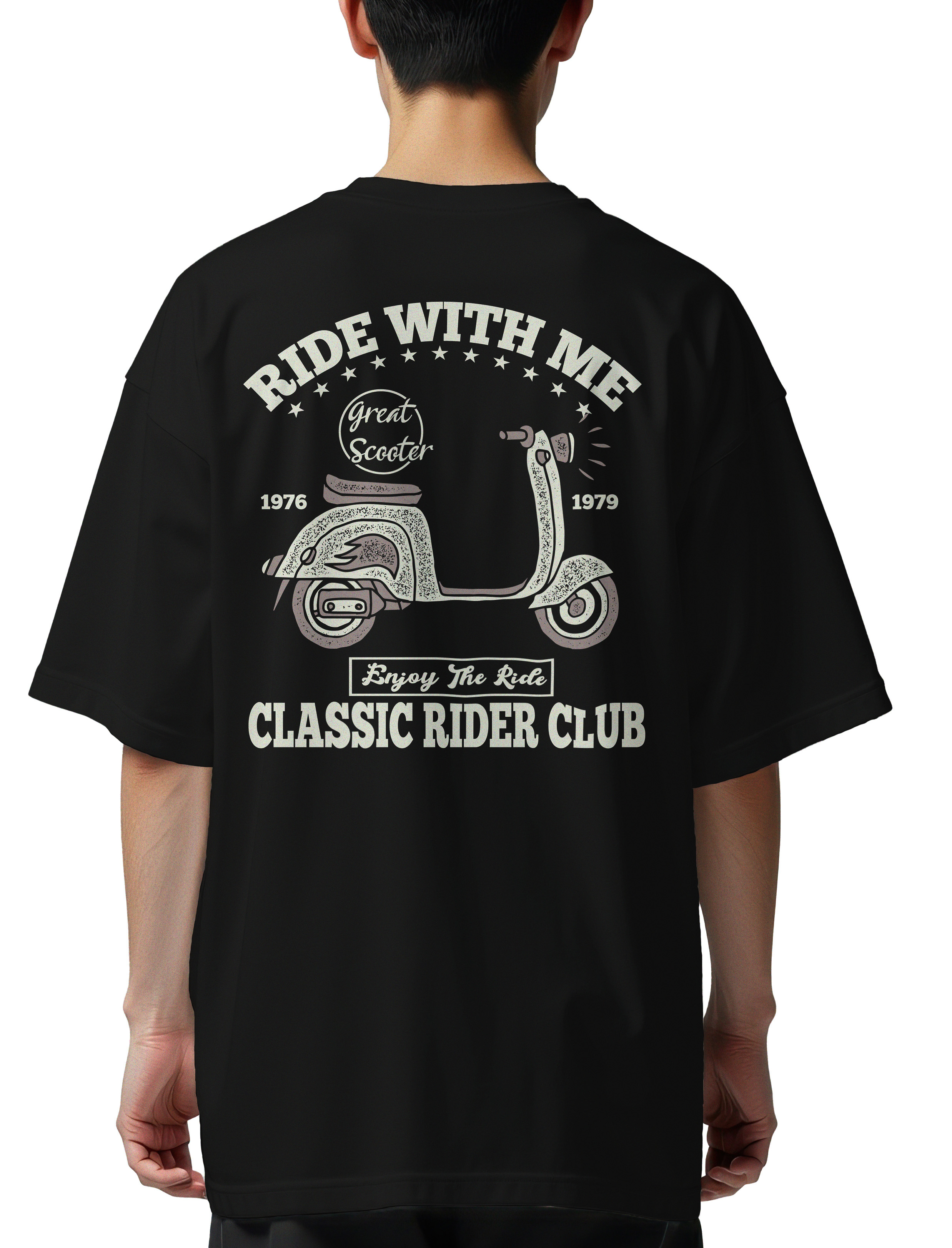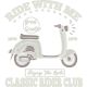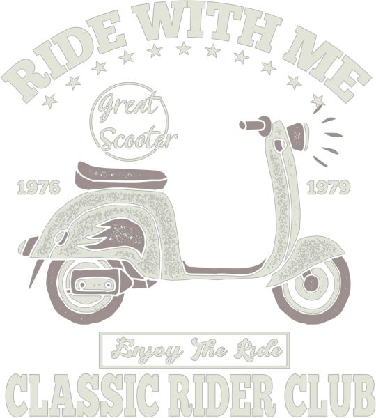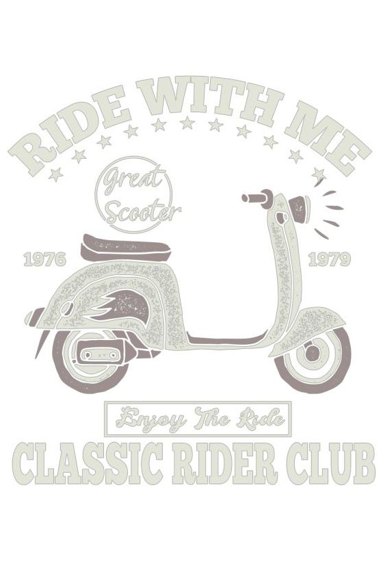 Vintage σκούτερ με κείμενα "RIDE WITH ME" και "CLASSIC RIDER CLUB".