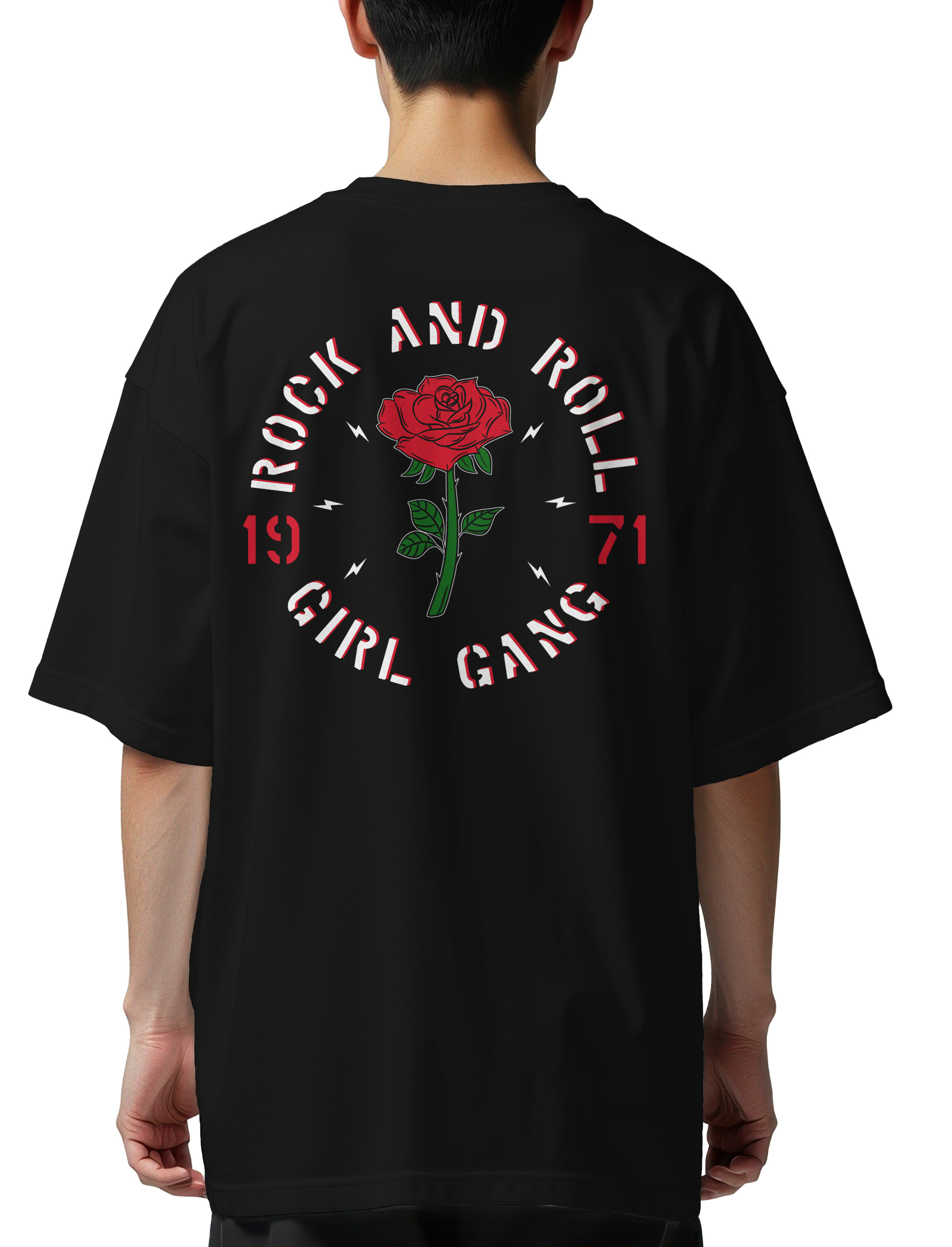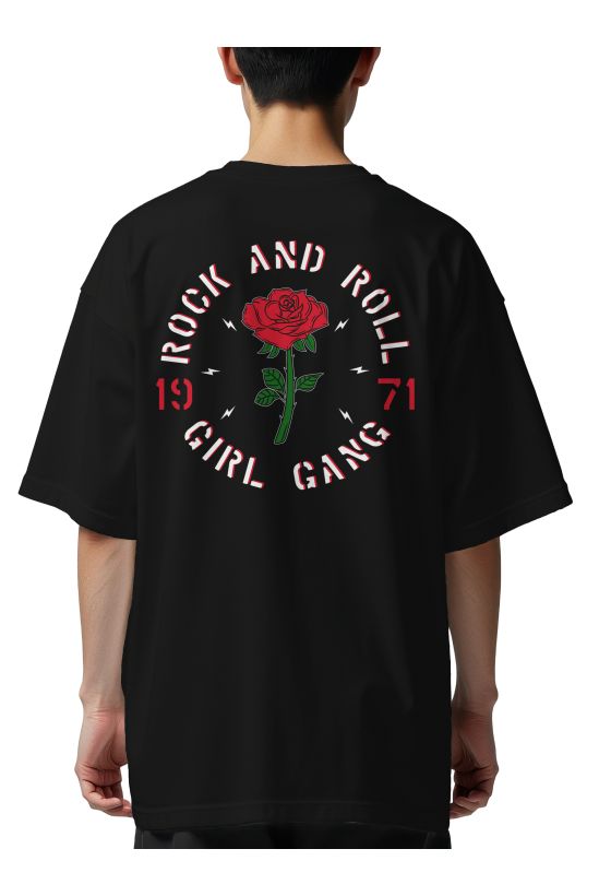 Oversized T-Shirt Rock n Roll Girl Gang Pop Culture Black