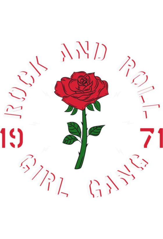 Κόκκινο τριαντάφυλλο με κείμενα "ROCK AND ROLL" και "GIRL GANG".