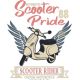 Ρετρό σκούτερ σε κρεμ με μπλε φτερά, κείμενα "Authentic Scooter 88 Pride" και "Scooter Rider".