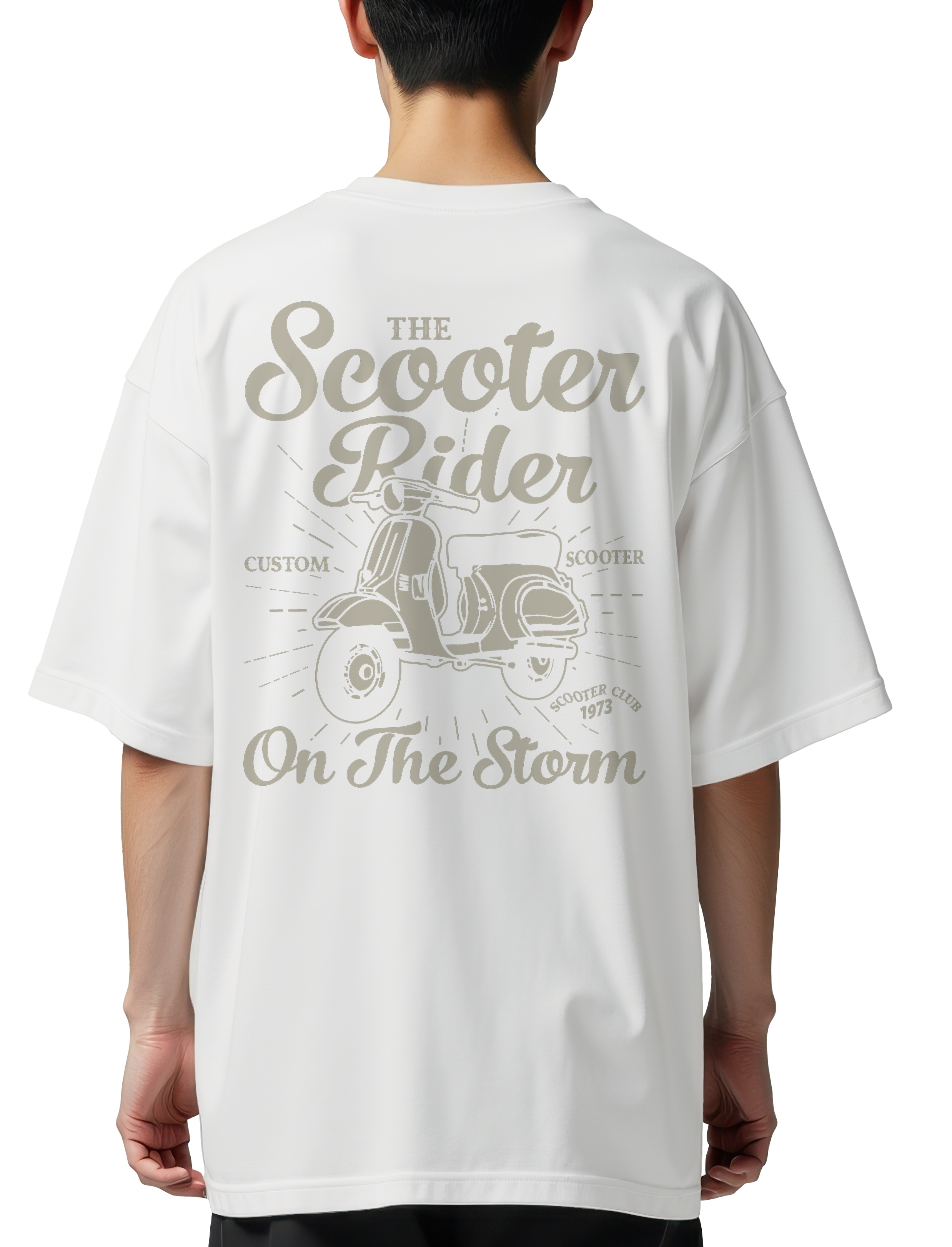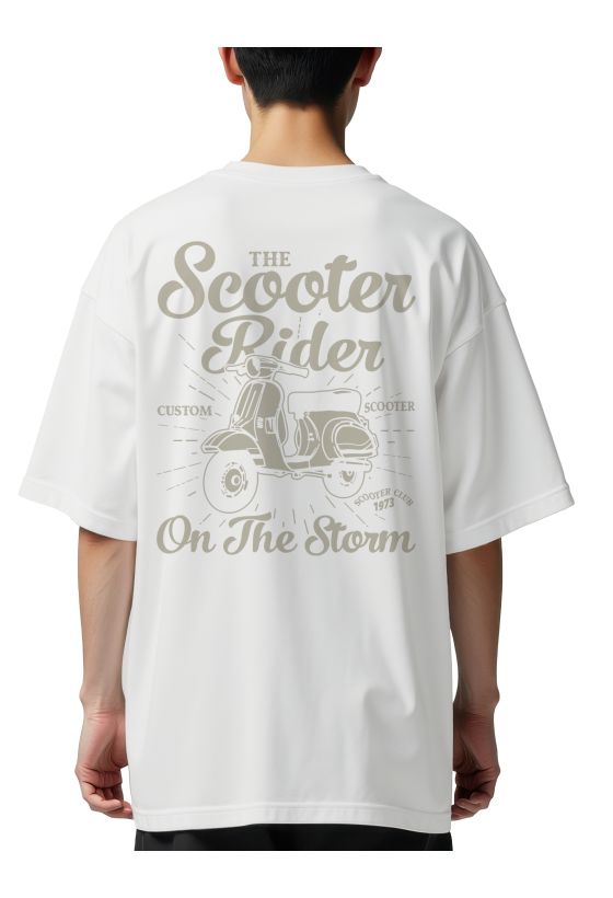Oversized T-Shirt Scooter Rider Pop Culture White