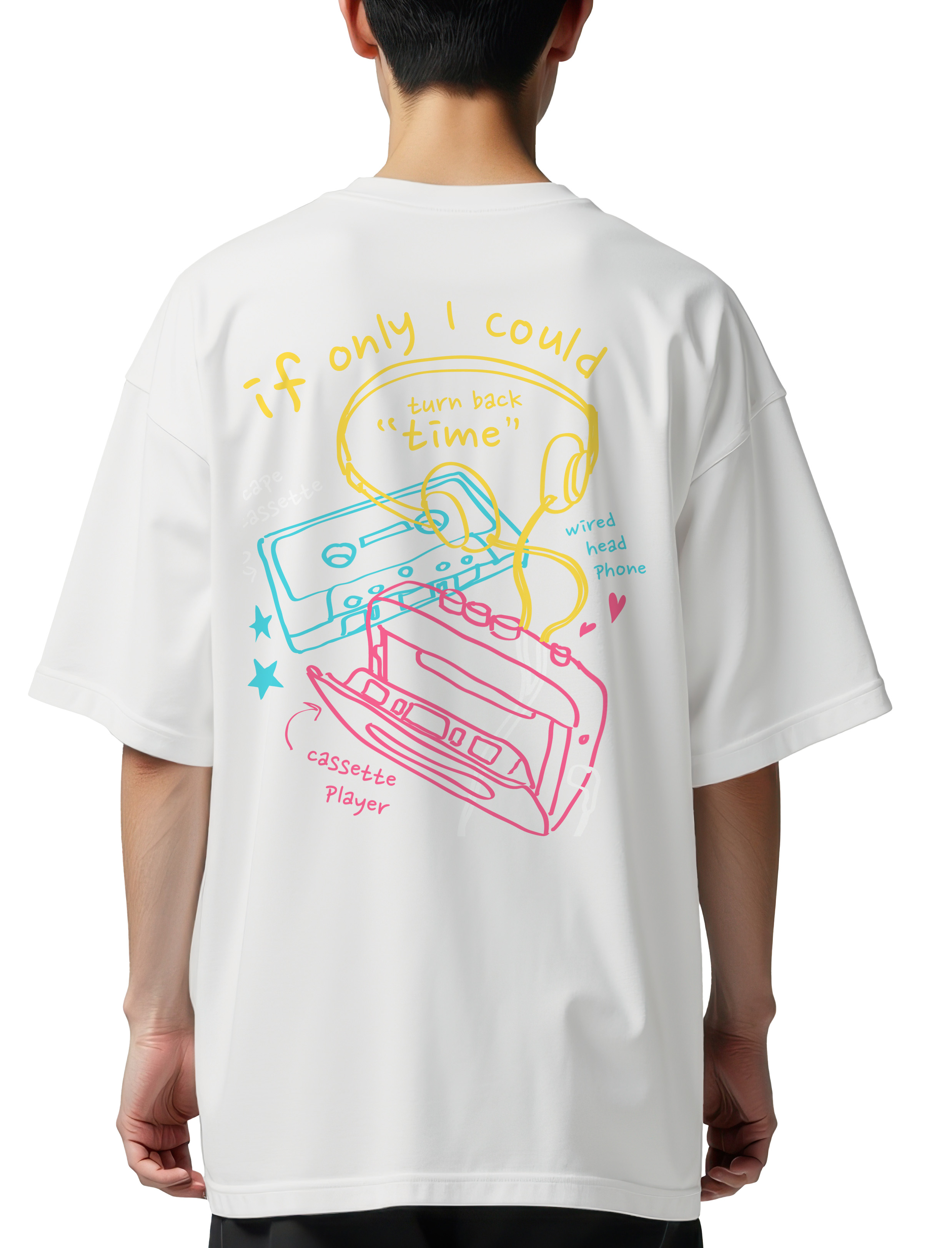 Doodle στυλ με ακουστικά, κασέτα, κασετόφωνο και κείμενο "if I could turn back time".