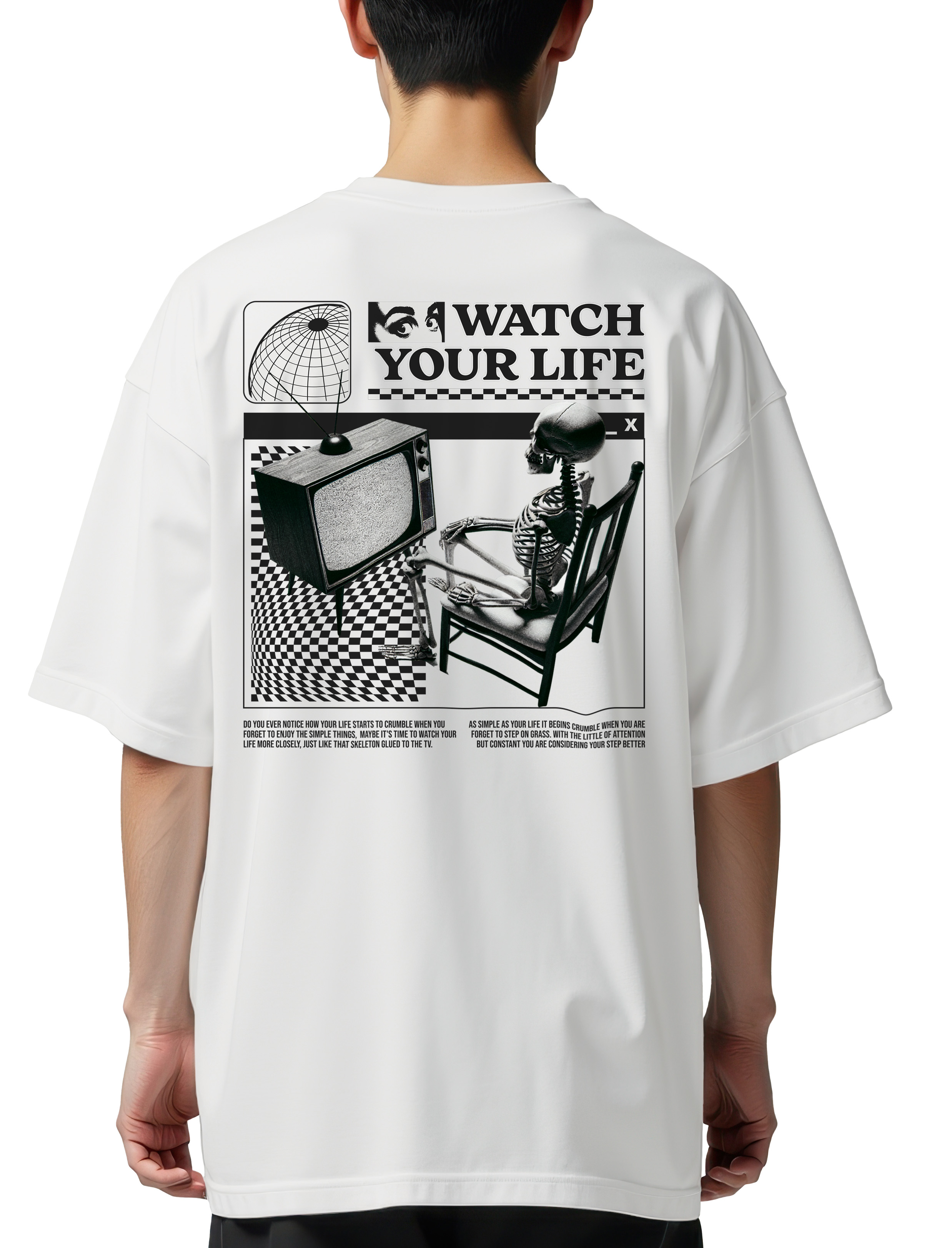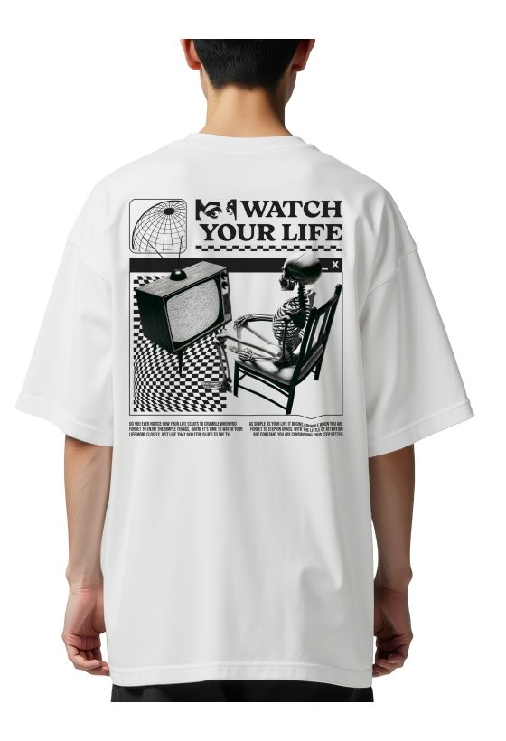 Oversized T-Shirt Watch Your Life Pop Culture White